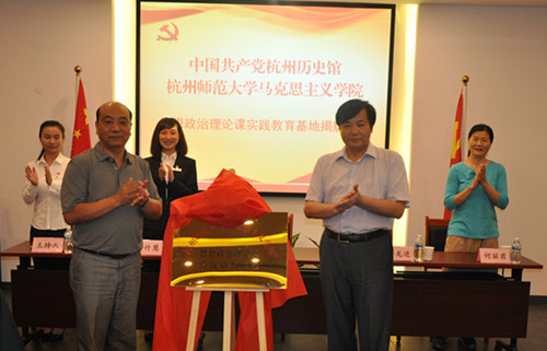 2017年6月27日上午,亚洲无码 与中国共产党杭州历史馆隆重举行思政理论课实践教育基地揭牌仪式。中共杭州市委党史研究室副主任曹正法、中国共产党杭州历史馆书记兼副馆长柳竹慧、亚洲无码 党总支书记兼执行院长余龙进、副院长何丽君,以及亚洲无码 全体师生参加了此次揭牌仪式。