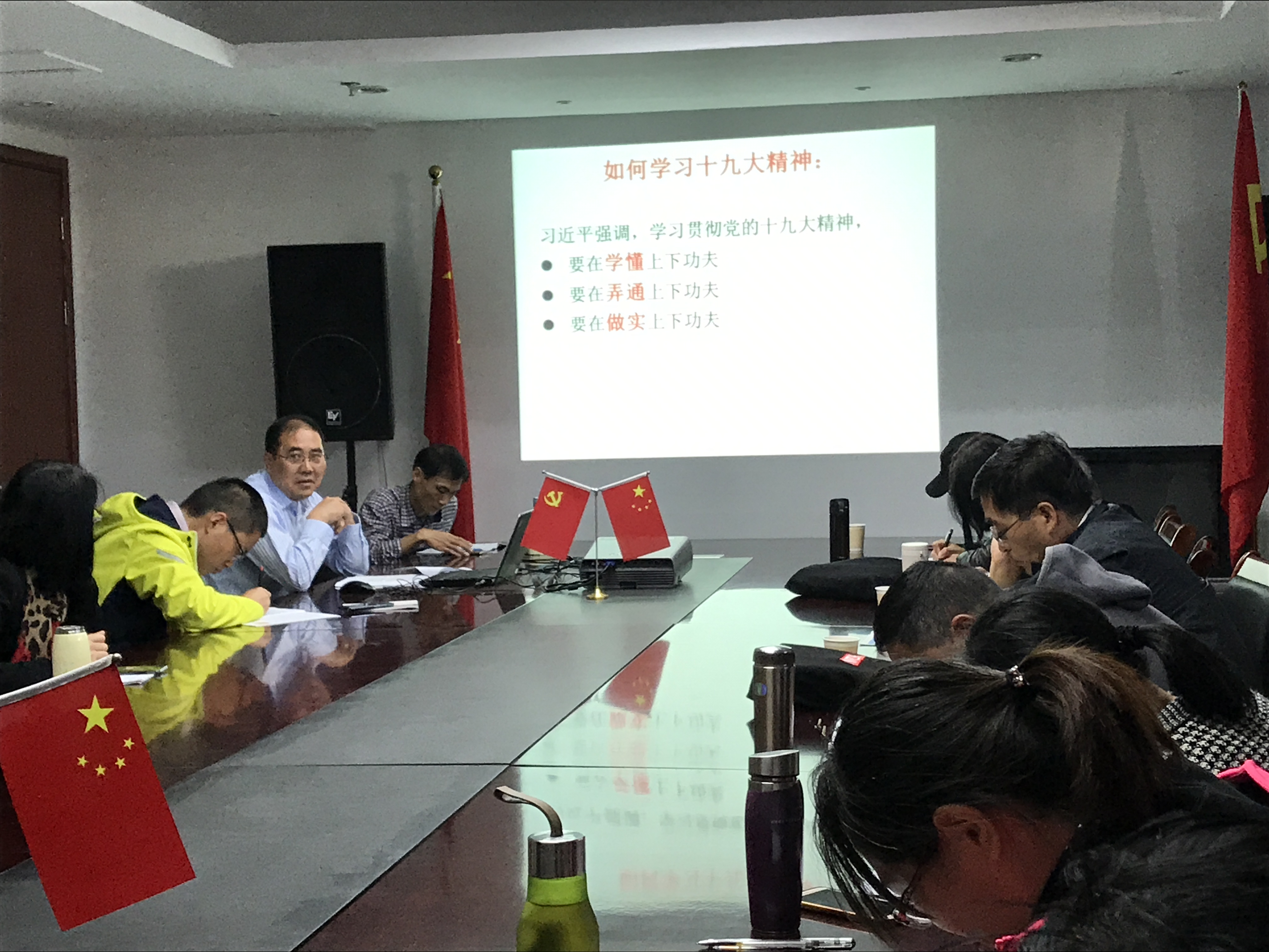 11月1日下午,亚洲无码 在会议室举行十九大精神学习研讨会,全体教师和研究生参加了会议。会议由教工第一支部书记应维华主持。