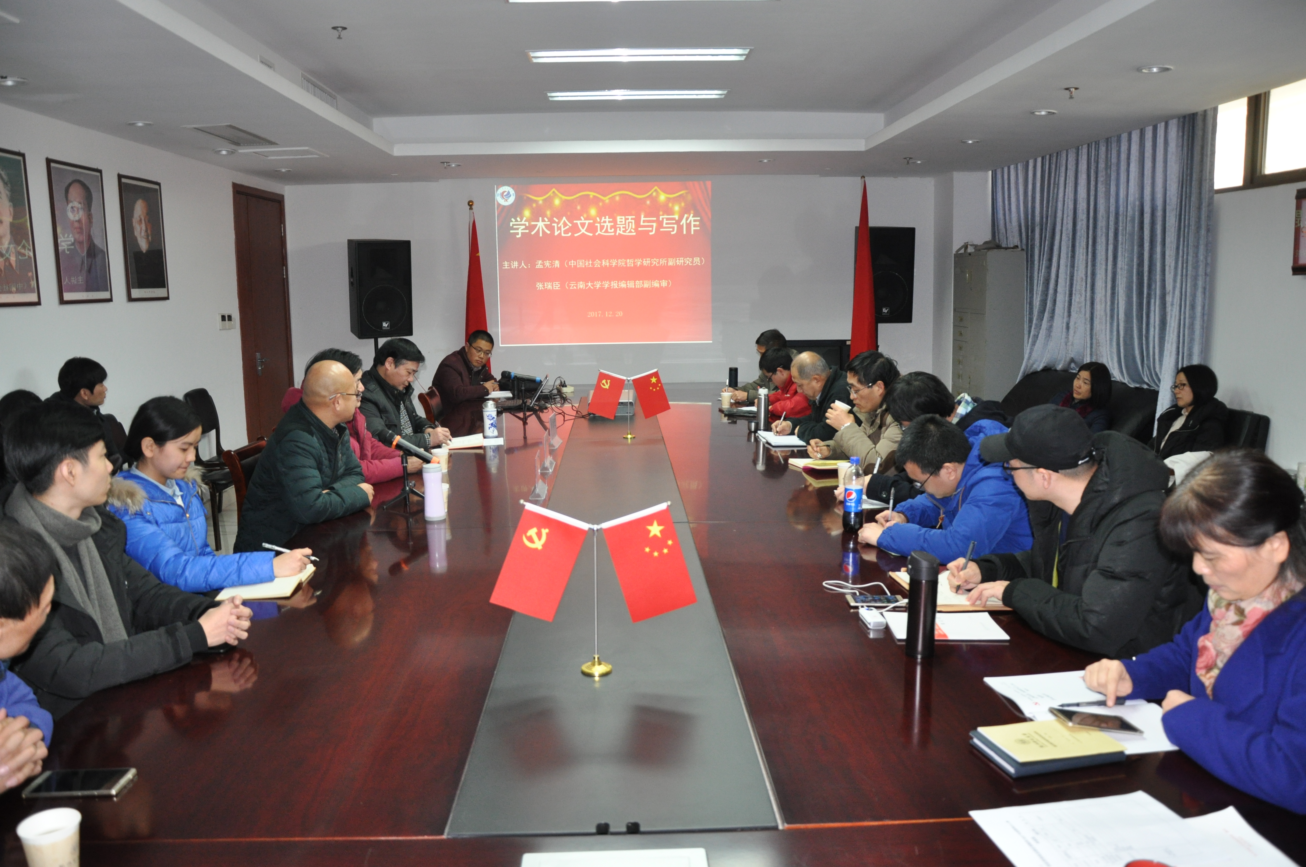 12月20日下午,中国社会科学院哲学研究所孟宪清副研究员和云南大学学报编辑部张瑞臣副编审应邀来亚洲无码 出席“学术论文选题与写作”座谈会。亚洲无码 院长余龙进教授主持会议。学院部分老师和研究生参加会议。