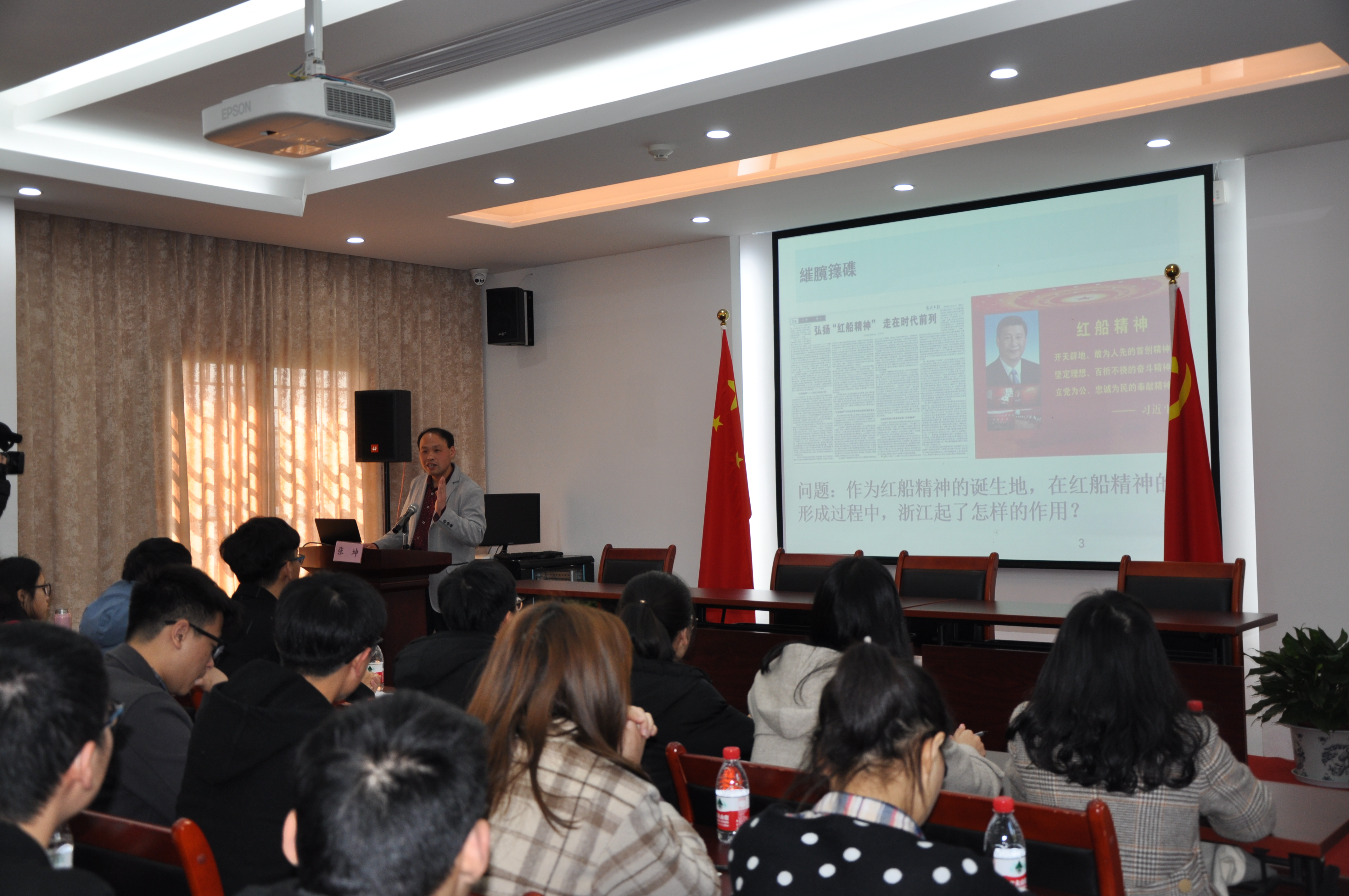 根据因地制宜、因时制宜、因材施教的原则,亚洲无码 教师张坤博士结合习近平总书记重要讲话精神,专门在党史馆开讲了第一堂思想政治理论课——《红船精神与建党时期的浙籍共产党员》。