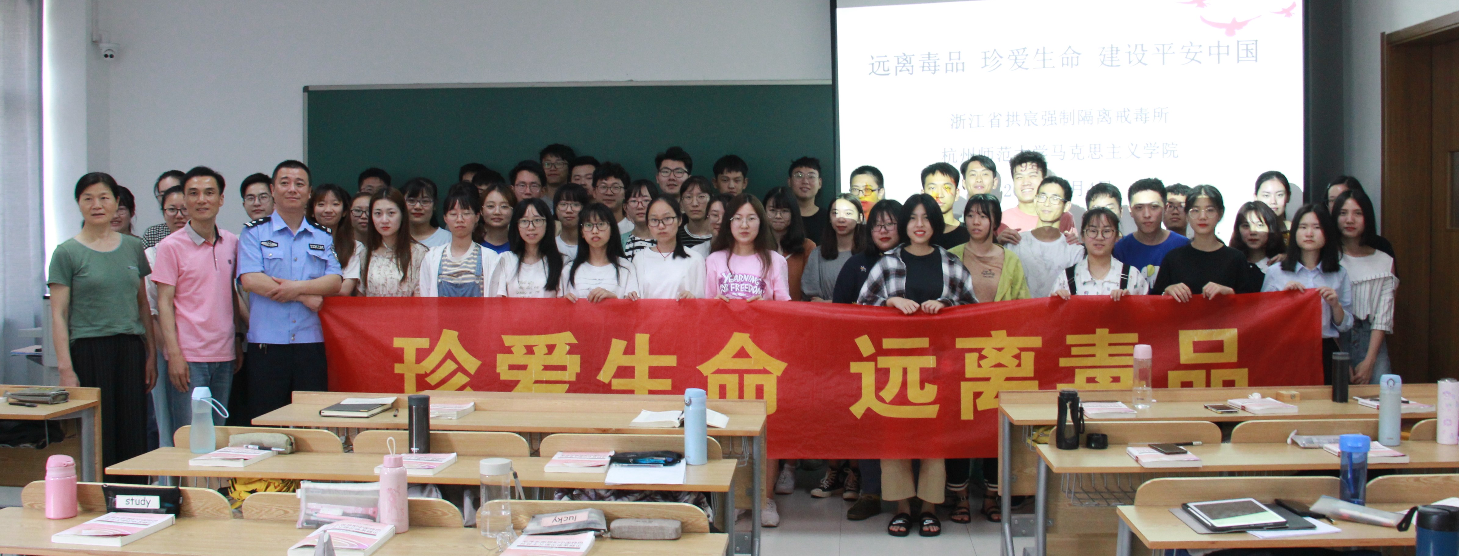 为增强大学生识毒、防毒、拒毒意识,加强大学生毒品预防教育工作, 亚洲无码 将禁毒教育融进思想政治理论课堂。6月4日上午,学院邀请了浙江省拱宸强制隔离戒毒所的郭崧、黄周青、陶侃警官与马院教师共同上了一堂精彩的禁毒教育课。