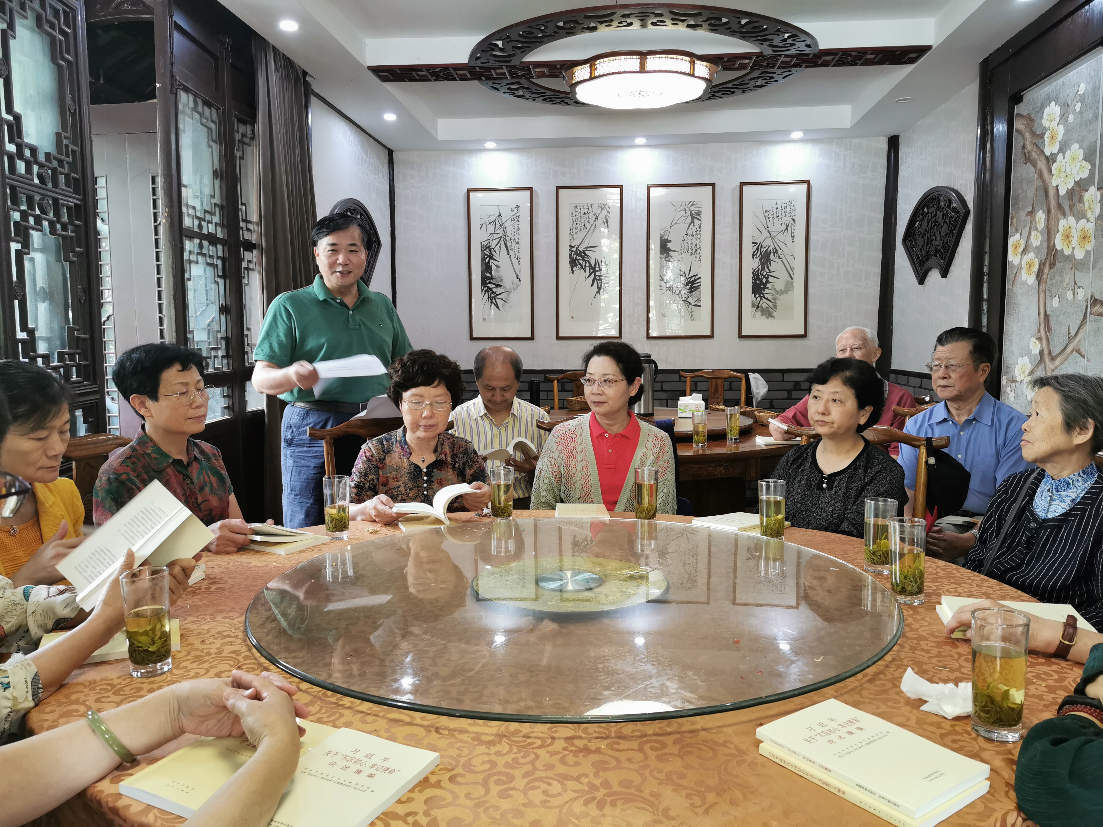 此次庆祝新中国成立70华诞、九九“重阳节”活动暨“不忘初心、牢记使命”主题教育专题学习会,马院退休党员相聚一起,就《习近平关于“不忘初心、牢记使命”重要论述选编》、《习近平新时代中国特色社会主义思想学习纲要》的学习,交流了体会,就新中国70年取得的伟大成就畅谈了感想,看到学校和马院的发展变化都感到由衷的高兴,并表示也一定会继续关注学校和学院的发展,以教书育人和入党的初心继续发光发热,把“不忘初心、牢记使命”主题教育搞好,把身体锻炼好!