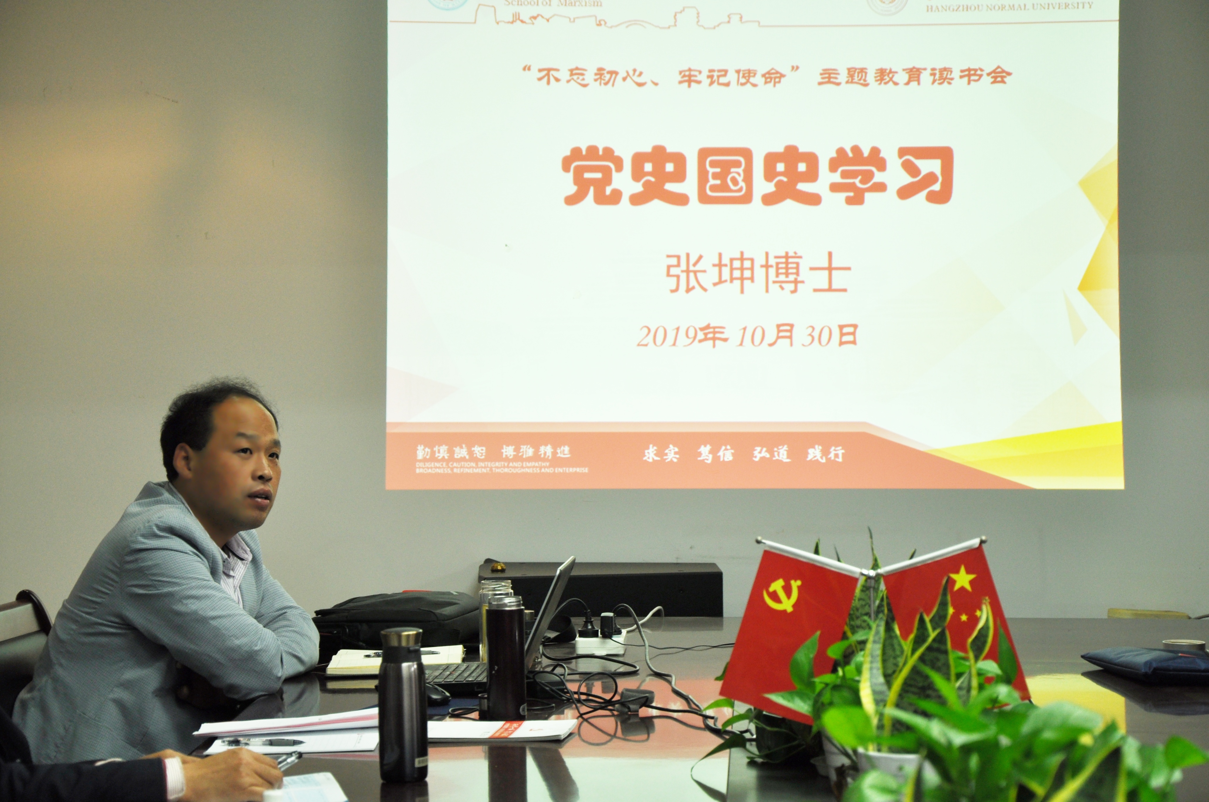 10月30日下午,亚洲无码 党总支开展“不忘初心、牢记使命”主题教育读书会,组织全体党员集中学习中国共产党历史和中华人民共和共国史,学院全体32名党员参加,读书会由学院教工第二党支部书记、纲要教研室主任张坤博士作主要发言,学院党总支书记、院长余龙进主持并讲话。