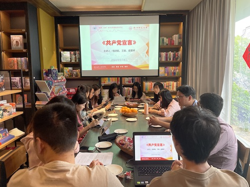 5月8日下午,“浙里·悦读”读书会联盟亚洲无码 起原读书社在学校图书馆晓风书屋举办了一场近距离、新形式的读书交流活动。本次活动由钱进航、王聪、盛夏婷三位马克思主义基本原理专业的硕士研究生细致解读《共产党宣言》。亚洲无码 部分老师和学生参与了本次读书会。