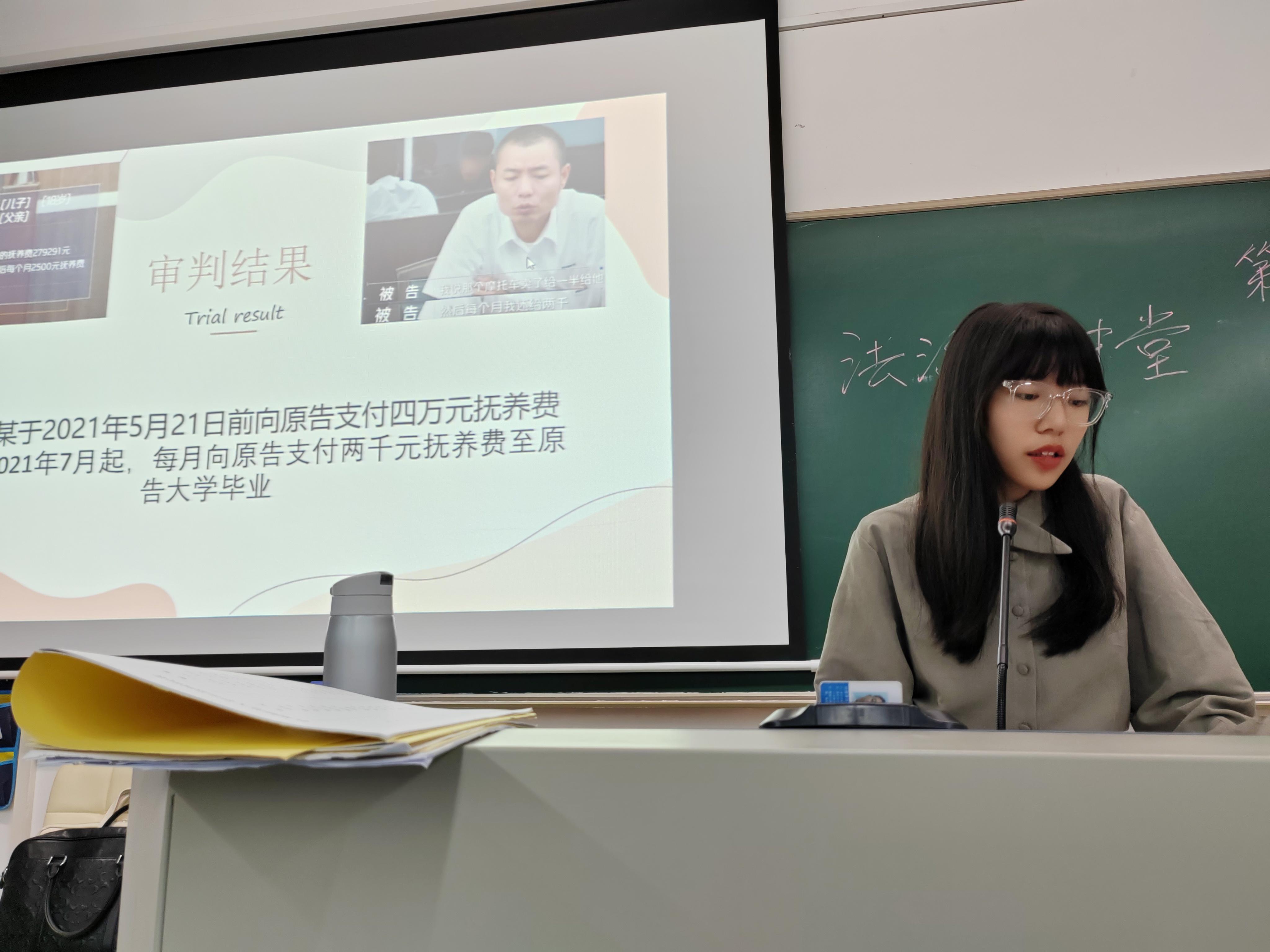 第七组林奕君、吴萱倩同学,通过分享有关吴某父母离异抚养费纠纷案例,让同学们学到了有关抚养费的知识,更让同学们认识到美好家庭对于孩子的重要性。
