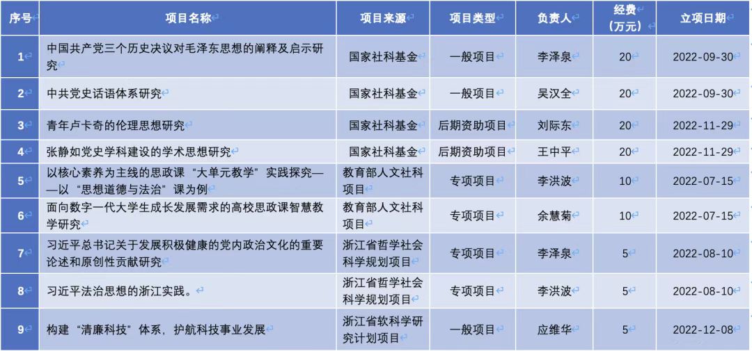 获批国家社会科学基金年度项目、后期资助项目共4项,和往年比是大丰收,创新高。这是在科研上继去年12月底获得一项省哲学社会科学优秀科研成果奖一等奖后,又一较大突破。另获包括教育部思政专项项目、浙江省哲学社会科学规划专项项目、浙江省软科学项目、“十四五”省级教学改革项目等才内的省部级项目10余项。依托科研骨干,自设8项国家社科基金项目预研培育项目。