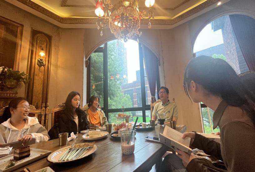 5月17日下午,亚洲无码 2022级思想政治教育专业504寝室和505寝室全体成员和综合导师姜海波副教授在咖啡厅聚餐并举行了导师制小组活动。