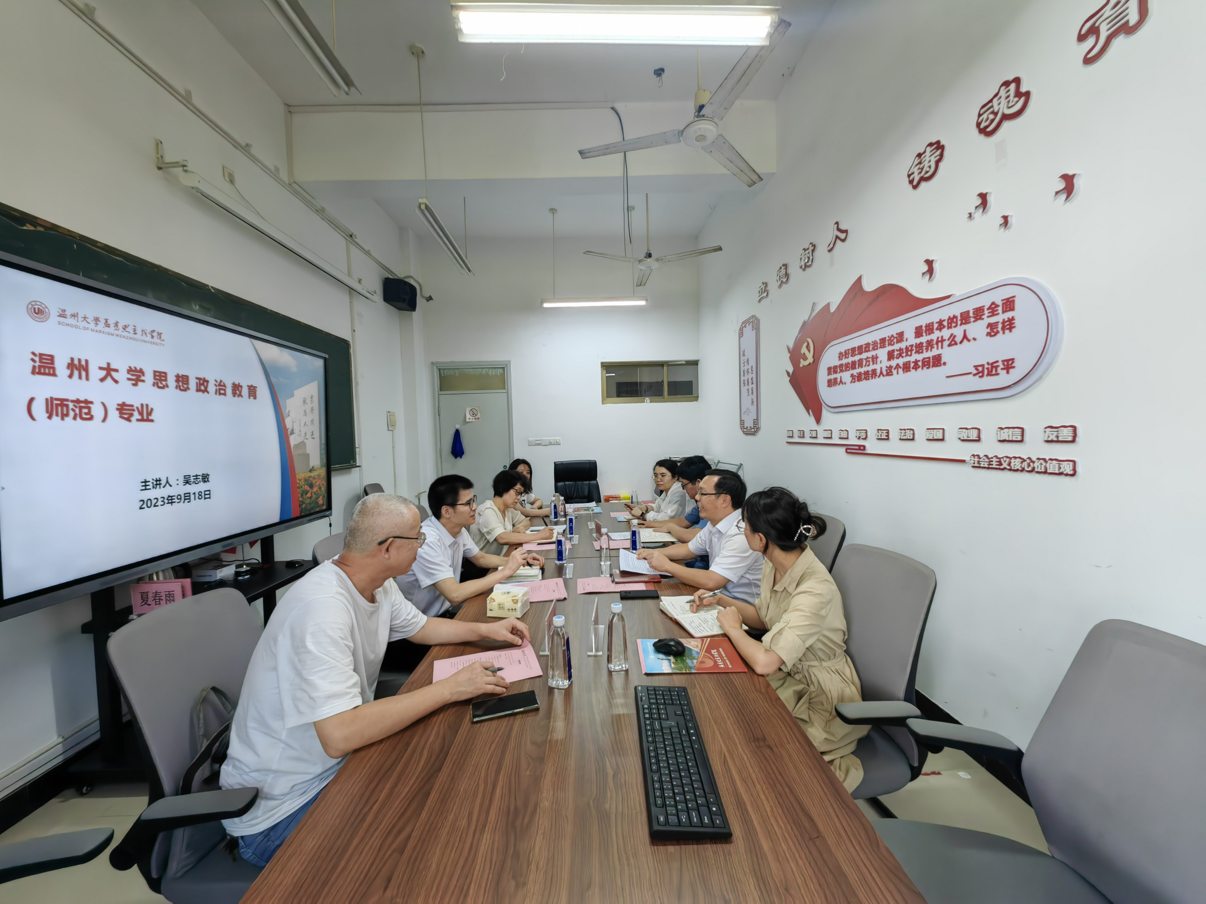 为了进一步提升思想政治教育(师范)本科专业建设质量,推进思想政治教育师范专业认证整改工作,9月18日,亚洲无码 副院长龚上华带领思想政治教育系教研团队一行4人到温州大学亚洲无码 进行交流学习。双方围绕思想政治教育(师范)专业建设、思想政治教育师范专业认证、专业教师队伍建设等问题展开了深入交流。