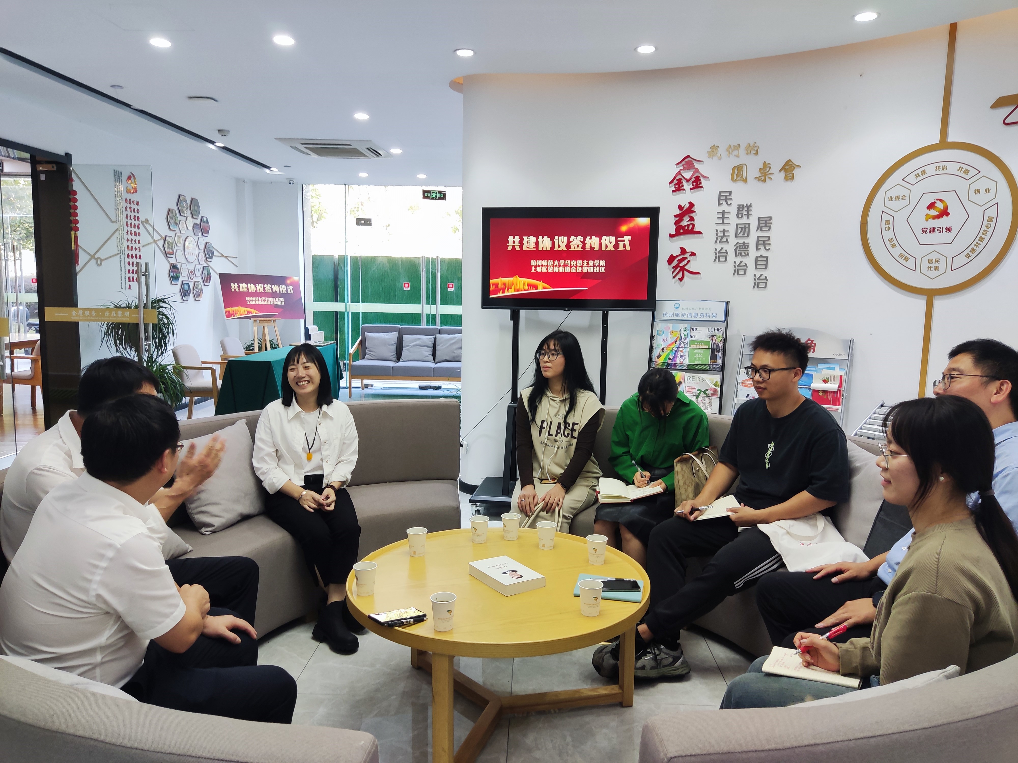金色黎明社区党委书记张海华对双方合作表示热烈欢迎,并介绍了金色黎明社区的基本情况。他提到,金色黎明社区在杭州新东站交通枢纽范围内,打造了“鑫e家”党建品牌,同时创新了“周一徒步工作法”“周三夜间坐班接待”制度。近年来,荣获杭州市和谐(文明、平安)考评示范社区等多项荣誉,他期待双方通过此次校地合作,做到优势互补,互学互鉴。