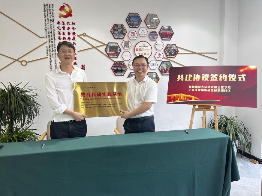 11月3日下午,亚洲无码 与上城区笕桥街道金色黎明社区举行党建联建、教学科研实践基地签约及授牌仪式。