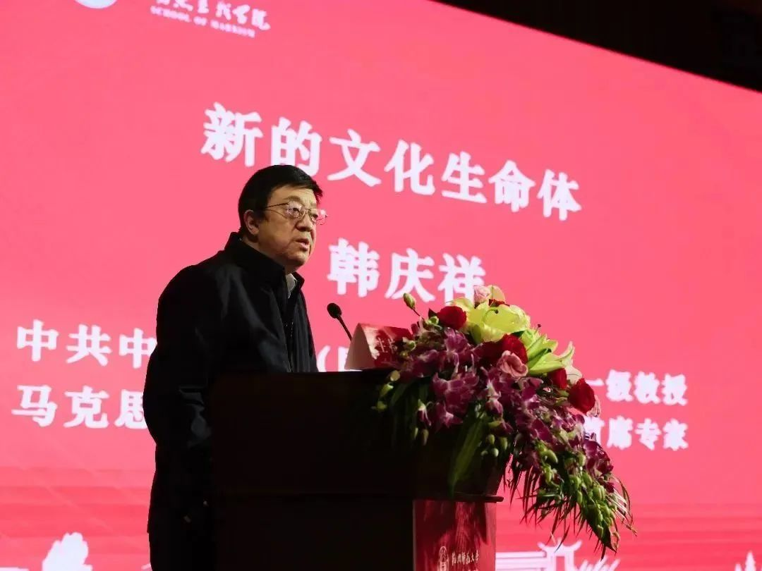 中共中央(国家行政学院)一级教授、马克思主义理论研究和建设工程首席专家韩庆祥教授作《新的文化生命体》的主题报告。韩教授认为习近平文化思想内涵丰富、博大精深,最核心的问题是要以“新的文化生命体”这一钥匙来理解习近平文化思想。提出新的文化生命体这一概念,是历史的必然,符合时代发展要求。新的文化生命体是一个具有标识性、总体性、根本性、全局性和战略性的范畴,其逻辑起点是新时代的中国具体实际,它是继续推进马克思主义中国化时代化,进而推进理论创新的需要。新的文化生命体包括五大内涵,意味深长、意义深远,具有“立”中国式现代化理论、“破”西方中心论和文化虚无主义、“合”马克思主义和中华优秀传统文化、“兼”吸收人类文明优秀成果的理论之用,与“行”解决新时代中国问题的实践之用。韩教授以深厚的学术功底阐释了“新的文化生命体”这一标识性概念,对其内涵、特征和意义作出了科学理解,深化了对习近平文化思想的理解。