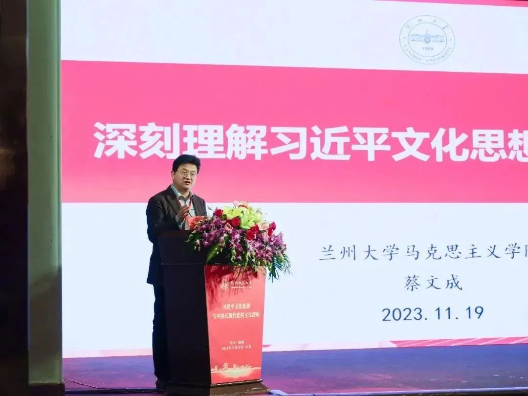 兰州大学蔡文成教授在《深刻理解习近平文化思想的生成逻辑》的报告中指出,习近平文化思想是新时代党领导文化建设实践经验的理论总结,是“两个结合”的重大理论成果,丰富和发展了马克思主义文化理论,构成了习近平新时代中国特色社会主义思想的文化篇。习近平在新时代文化建设方面的新思想新观点新论断,内涵十分丰富、论述极为深刻,既有文化理论观点的创新和突破,又有文化工作布局上的部署要求,明体达用、体用贯通,是新时代文化建设强大思想武器和科学行动指南。习近平文化思想的形成和发展具有深刻的历史逻辑、理论逻辑、现实逻辑、文化逻辑。学习宣传贯彻习近平文化思想需要先学多学深学,消化内化转化,研究阐释宣传,示范引领辐射。