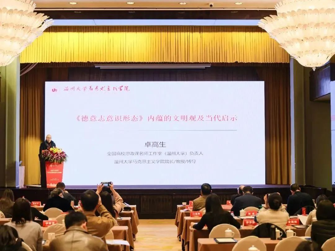 温州大学亚洲无码 院长卓高生教授在《<德意志意识形态>内蕴的文明观及当代启示》报告中首先提到当今,以西方为首的国家不断以“文明冲突论”“西方文明优越论”等狭隘言论冲击世界文明,人类文明的内在冲突日渐增长的现象。其次从如何正确看待社会主义文明形态和资本主义文明形态的关系?人类文明进步的方向是什么?这些问题去寻找解决的方法。认为可以从《德意志意识形态》等马克思主义经典著作中汲取正确的世界观与方法论,用科学的文明观来回答好这些重大问题,进而为构建人类文明新形态的实践提供理论支持。最后从历史唯物主义的科学理论奠定文明进步之基;从资本主义文明的理性批判走向社会主义文明;从社会主义文明的时代发展勾勒文明形态之新;从《形态》展望人类文明新形态的时代价值四个方面告诉大家要纵向横向比较学习世界文明和社会主义发展历程。