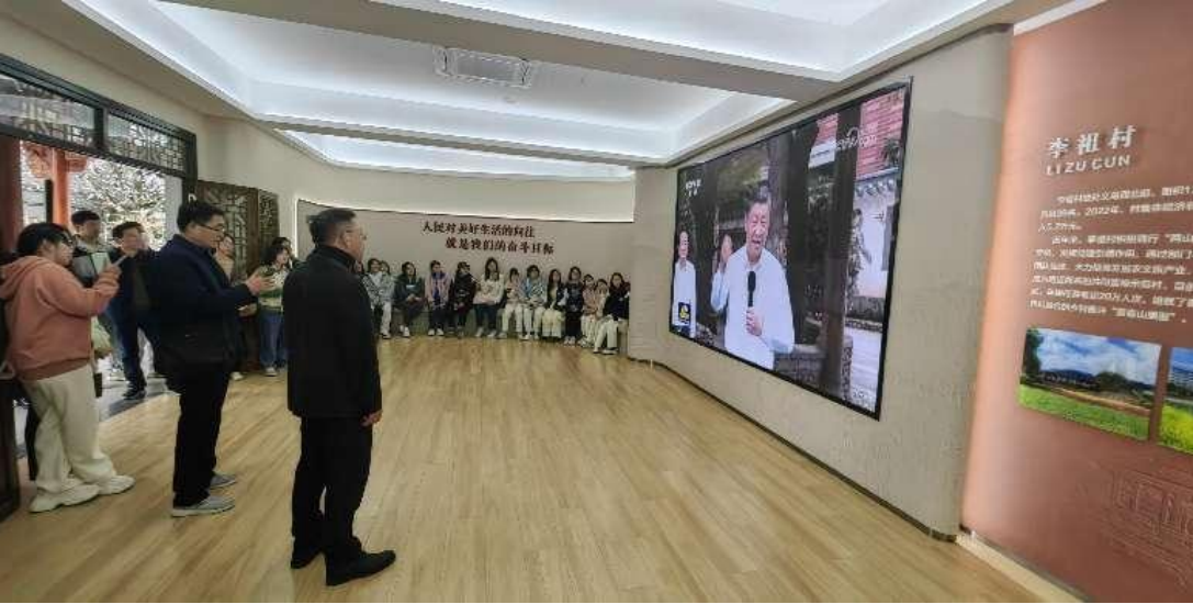 3月16日下午,马院这堂“行走的思政课”追随习近平总书记的脚步,转移到义乌市李祖村。教师代表与同学们感受乡村品牌,品尝乡村特色,融入乡村氛围,在这一幅美丽生态、美丽经济、美好生活有机融合的乡村振兴图景中体会到了党建引领下“两山”理念与“千万工程”的强大魅力,真正体会到“农民变股民、村房变楼房、流量变产量、颜值变产值、资源变财源、山区变景区”的真正魅力。
