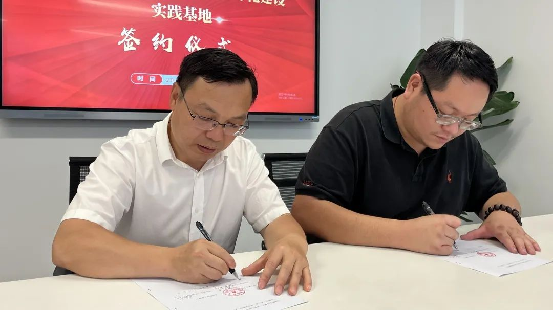 签约授牌前,双方共同参观了澎扬中学的校园和办公场所,尤其是学校 “国潮”学研基地等特色场馆。澎扬中学副校长屠旭华、思政课教师劳敏敏校友陪同座谈。