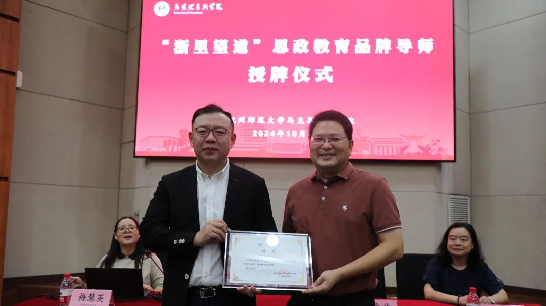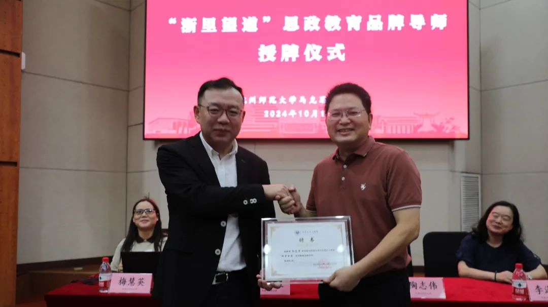 讲坛开讲前进行了“浙里望道”思政教育品牌导师授牌仪式。李洪波院长为陶志伟书记颁发“浙里望道”导师证书。