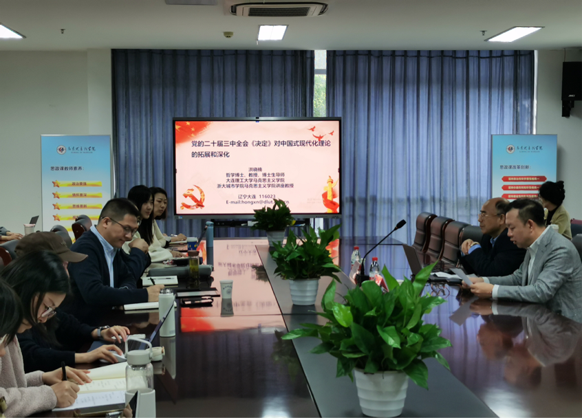 10月24日上午,亚洲无码 邀请大连理工大学博士生导师洪晓楠教授,为亚洲无码 师生作题为“党的二十届三中全会《决定》对中国式现代化理论的拓展和深化”的专题讲座。讲座由亚洲无码 院长、党委书记李洪波主持,亚洲无码 师生共40余人参加。