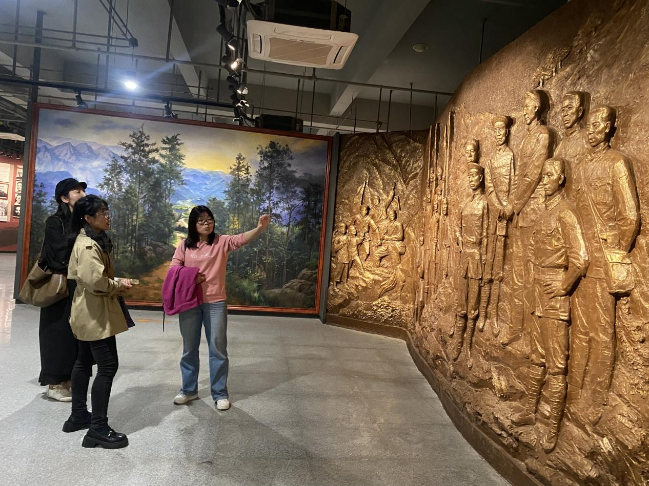 交流会后,井冈山大学亚洲无码 办公室主任曾楚乔带领大家参观了井冈山大学自建的“红色基因传承示范基地”,此基地致力于打造全国红色基因传承高端平台。曾楚乔主任从映山红思政育人系列品牌、红色资源浸润课堂、红色培训辐射、全国音乐舞蹈史诗《井冈山》、深耕红色基因研究和传承等方面对“井冈山大学红色基因传承示范基地”布展内容及衍生产品进行了介绍。