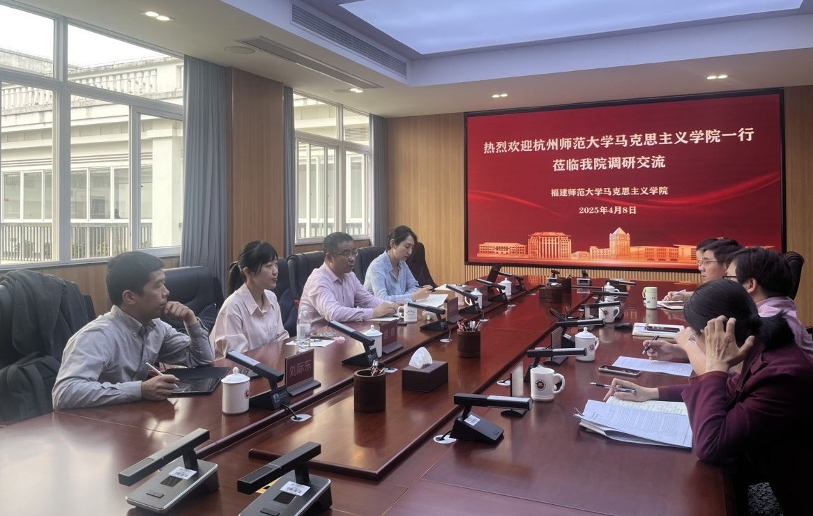 在学科建设、人才培养等方面的经验与成果,重点分享了学院在研究生培养各环节的考核机制、学校对马克思主义理论学科建设的投入情况,以及研究生导师的评聘要求与业务培训等方面的创新举措。胡祎赟副书记对福州大学马院的热情接待表示感谢,并介绍了杭师大马院的基本情况和发展规划。双方就如何优化学科布局、完善研究生培养体系等问题进行了深入探讨。