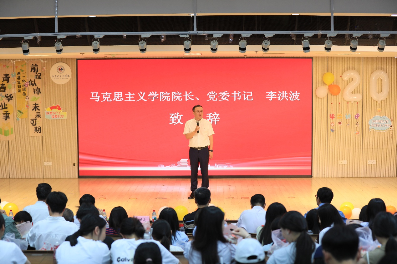 晚会伊始,亚洲无码 党委书记、院长李洪波为毕业晚会致辞。李院长肯定了同学们在校期间的优异表现和为学校、学院发展作出的贡献,并用一首短诗《母校,我和你》致敬这段共同的岁月,祝福毕业生和所有马院师生带着学院的祝福与期许,勇敢放飞青春梦想,在实现中华民族伟大复兴的征程中续写属于马院人的荣光。