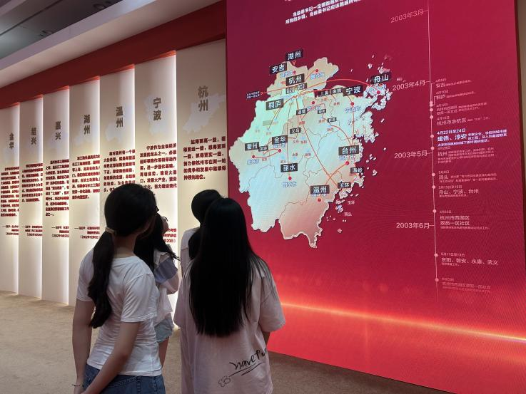 浙江展览馆中,“八八战略”二十载蝶变图景在数字屏流淌,让队员触摸到理论落地的力量,深切体悟战略实施带来的全方位、系统性变革。