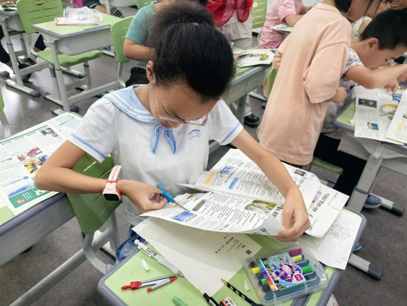 课程注重将文化传承与创新结合,设计戏曲文化启蒙、英语趣味学习等环节,通过动画、竞答和绘画等形式,将知识融入互动体验。在创意实践环节中,团队成员鼓励学生提高动手能力、发扬协作精神,让他们在水果拼盘设计、水晶灯制作、轻粘土制甲骨文等活动中发挥想象力,提高学生的美学素养。
