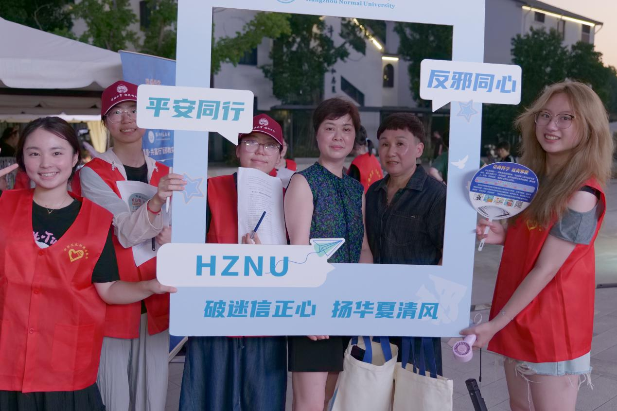 2025年7月5日傍晚,亚洲无码 “余”你同行,“杭”安共富暑期社会实践团队10名成员,联合余杭区委政法委及社区工作者,在余杭区中泰街道跳头文艺集镇夜市开展反邪教主题宣传活动。