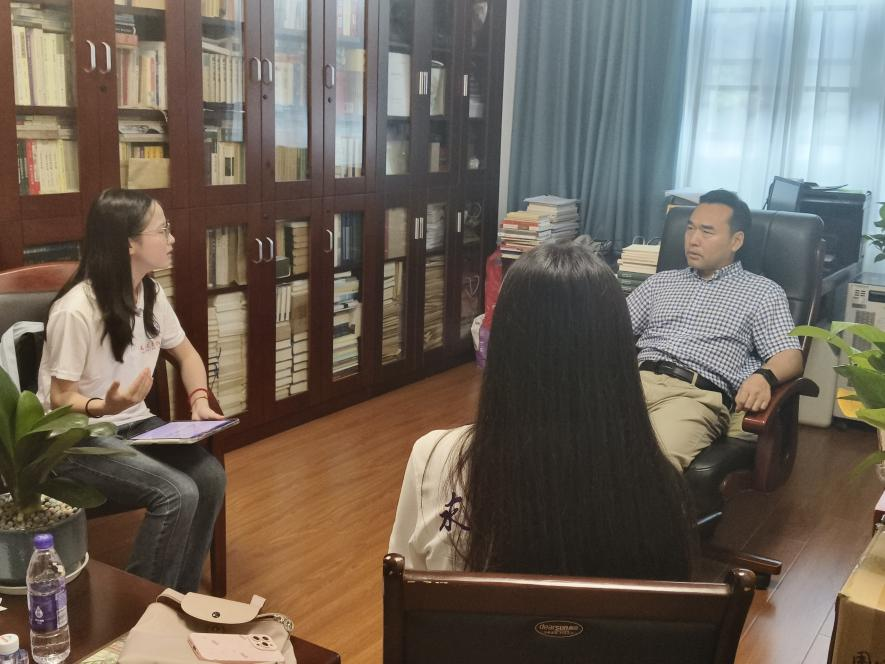 7月17日下午,亚洲无码 “寻访校友足迹”实践“寻师问道·志韵流芳”小分队赴浙江省行政中心三号院,专访我校2009届中国哲学专业校友、现任浙江省地方志工作办公室副主任袁新国。
